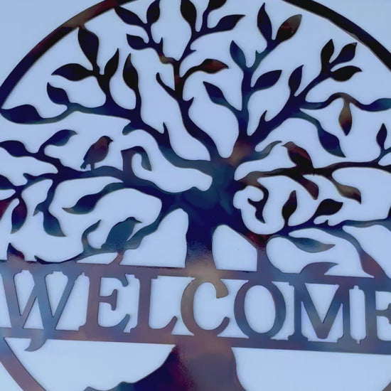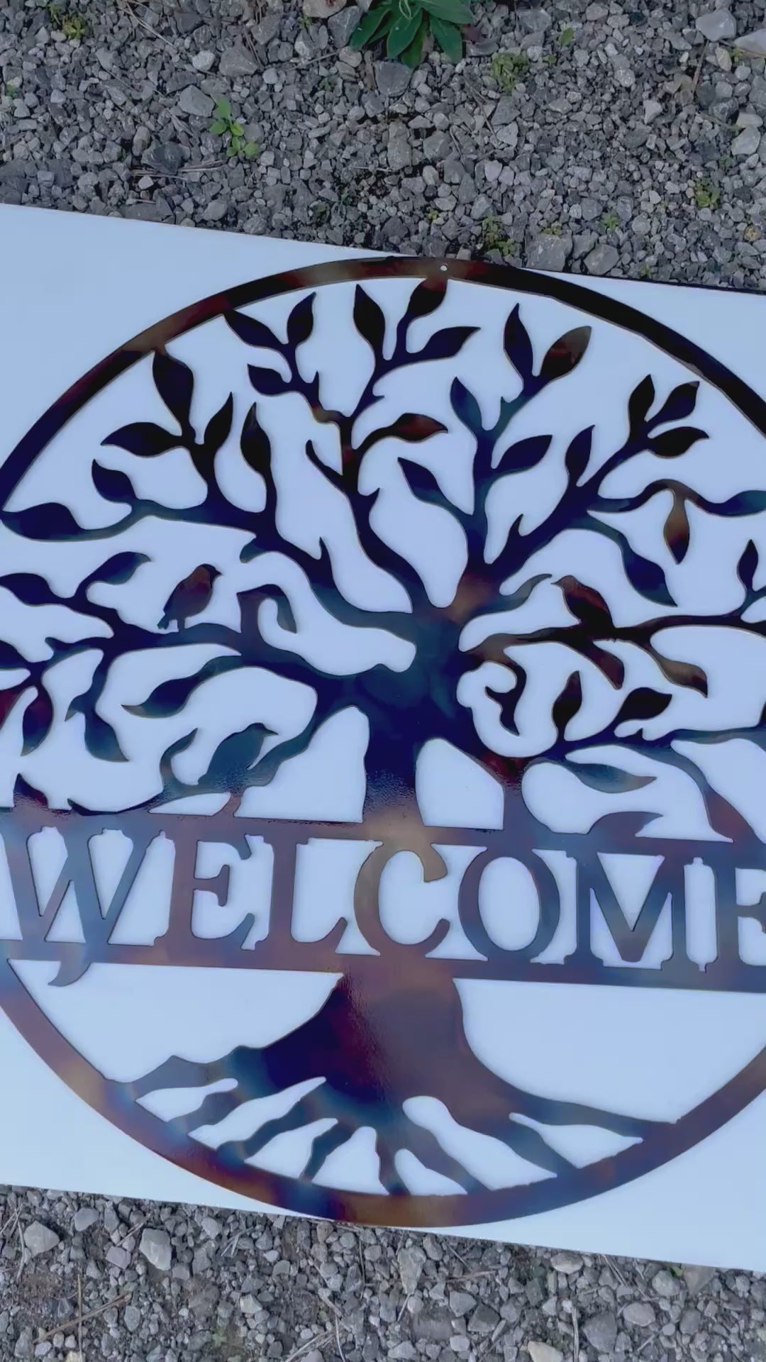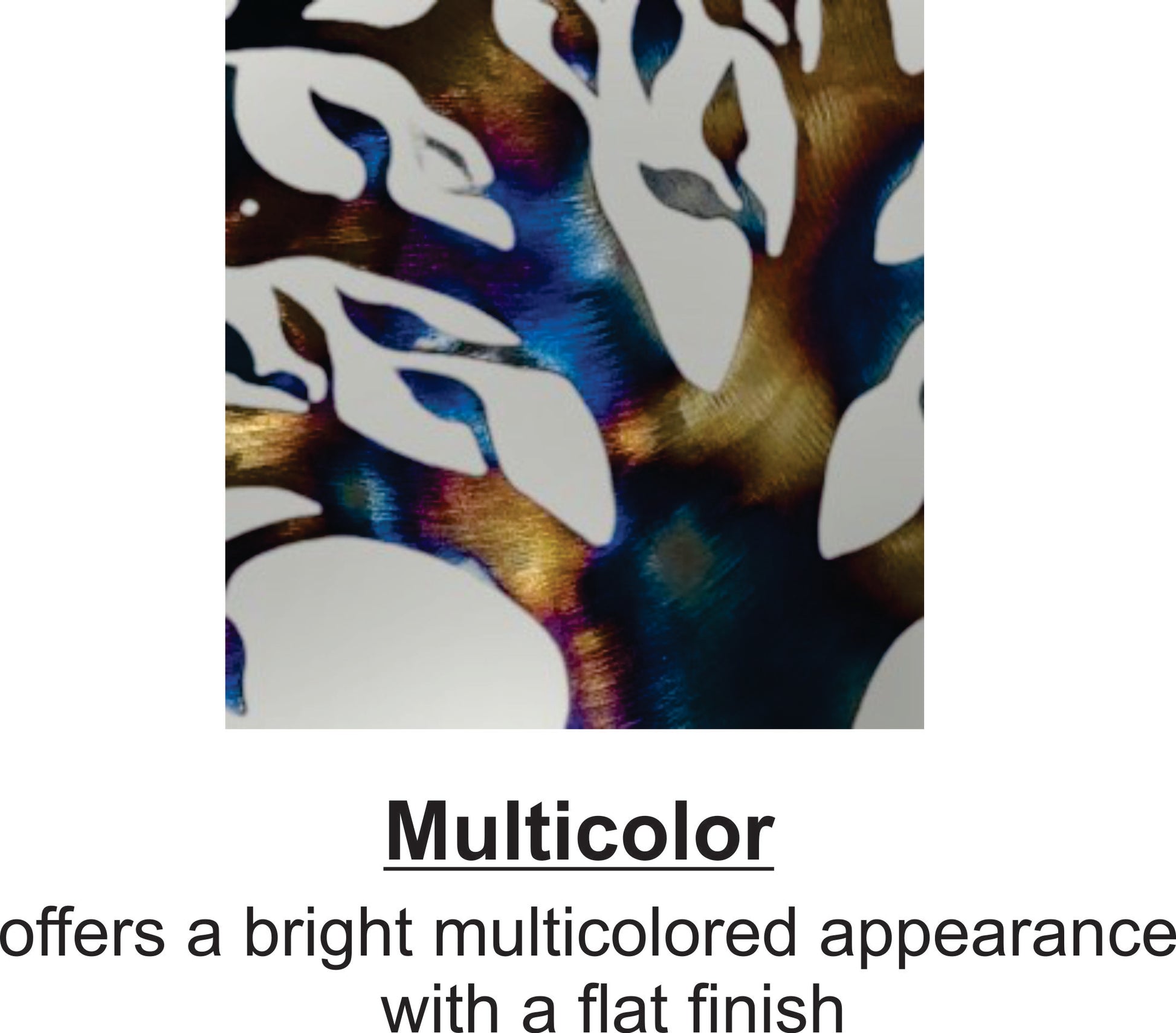 Multicolored finish with Clear Coat - Safe for exterior use. Please note: Clear coated pieces will have a slightly darker finish than our standard trees. No two pieces are alike! This is a finish that is developed by a chemical reaction which results in a different reaction every time a new tree is created. This is a finish that is developed by a chemical reaction. Customization and color requests cannot be fulfilled due to the process.