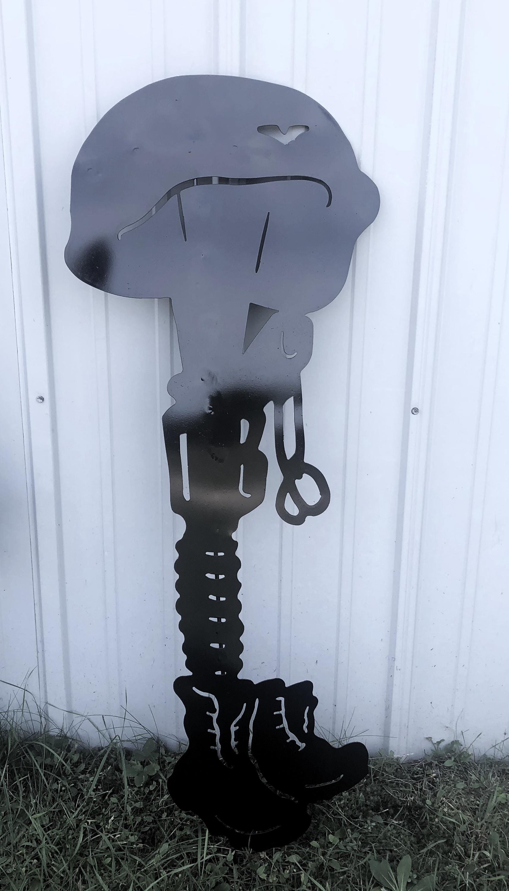 Military Memorial Metal Silhouette Fallen Soldier Helmet Rifle Boots Dog Tags