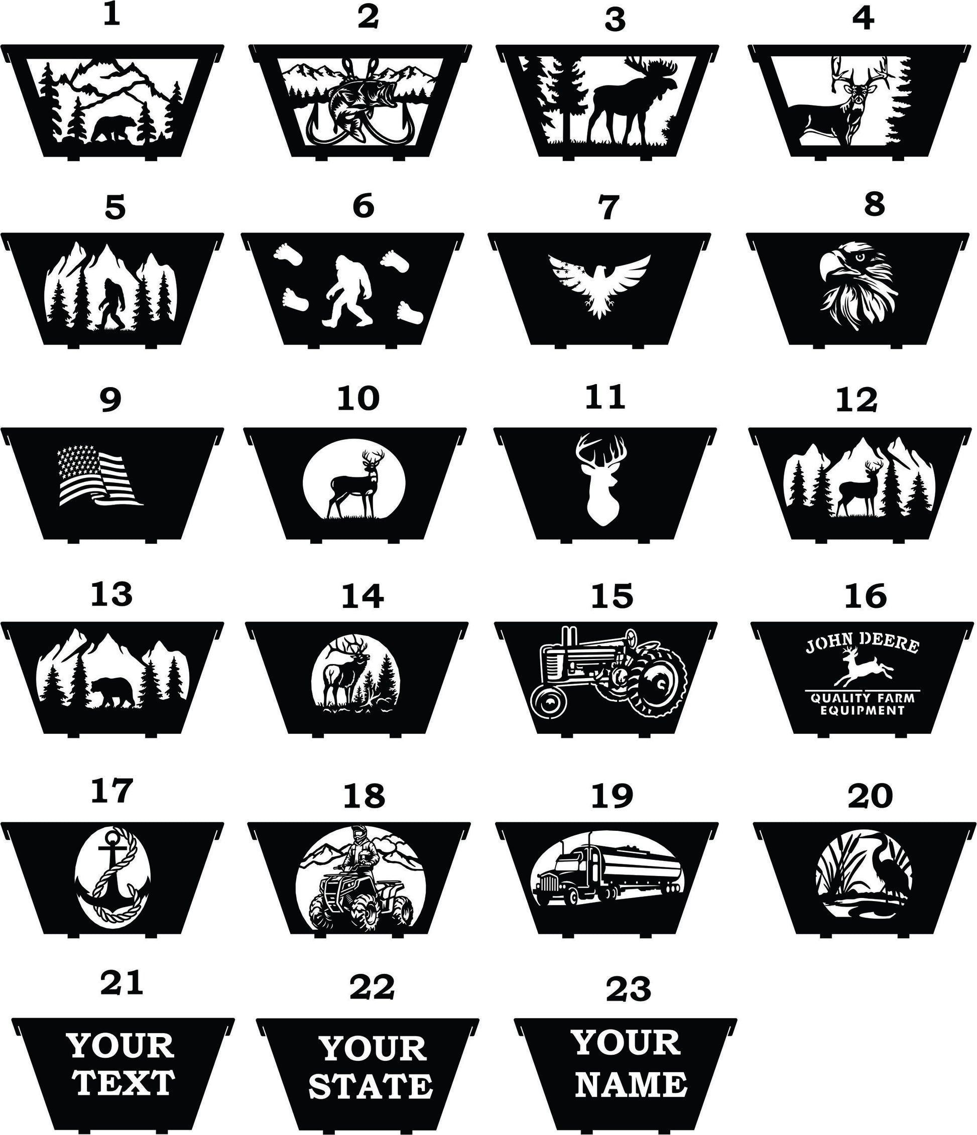 Looking for custom graphics? Interested in a design that isn't shown? Please send us a message. We would love to talk to you about a custom fire pit.