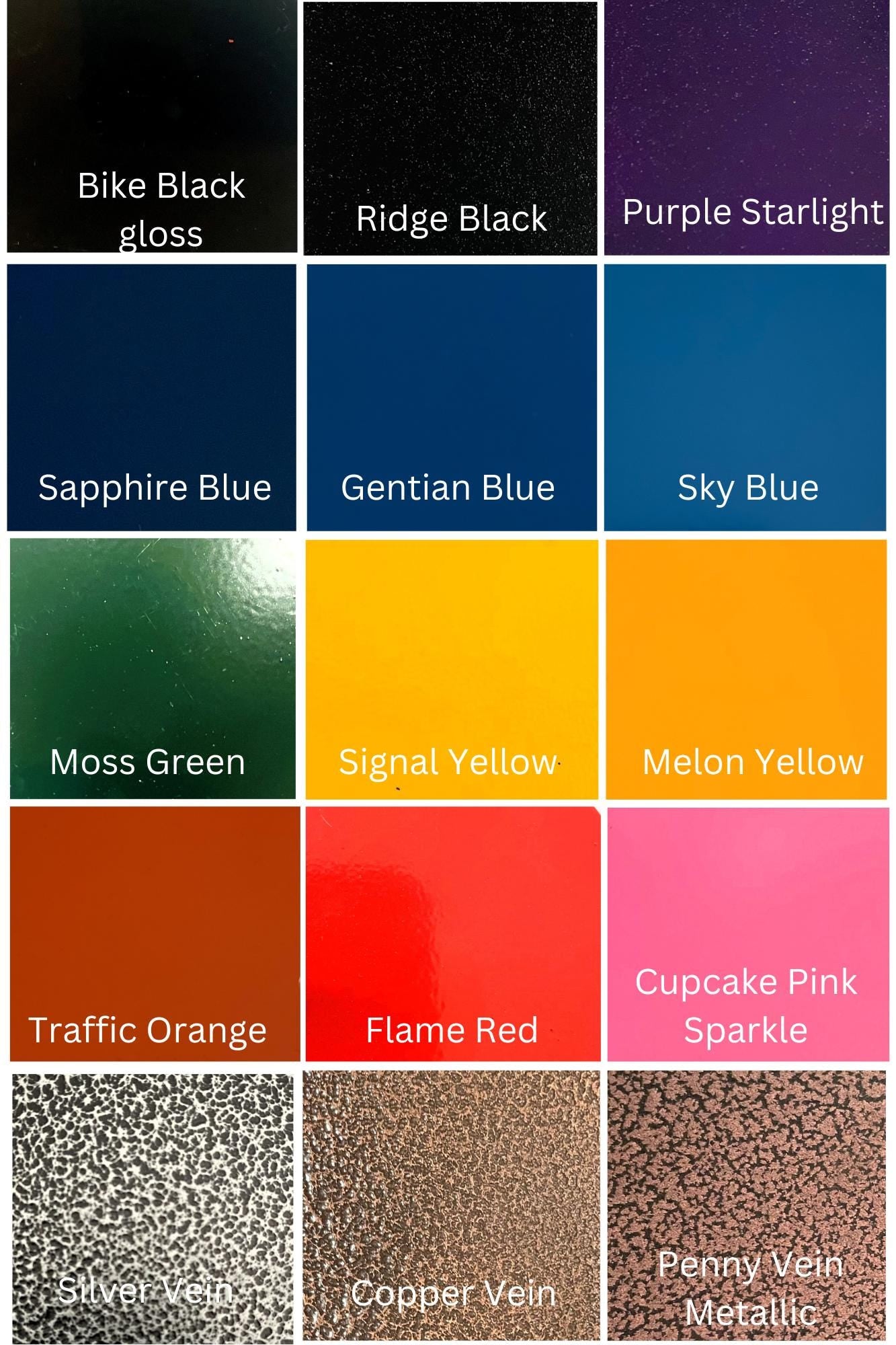 Powder coat paint - Most durable paint available. UV protected. Safe for indoor/outdoor use.